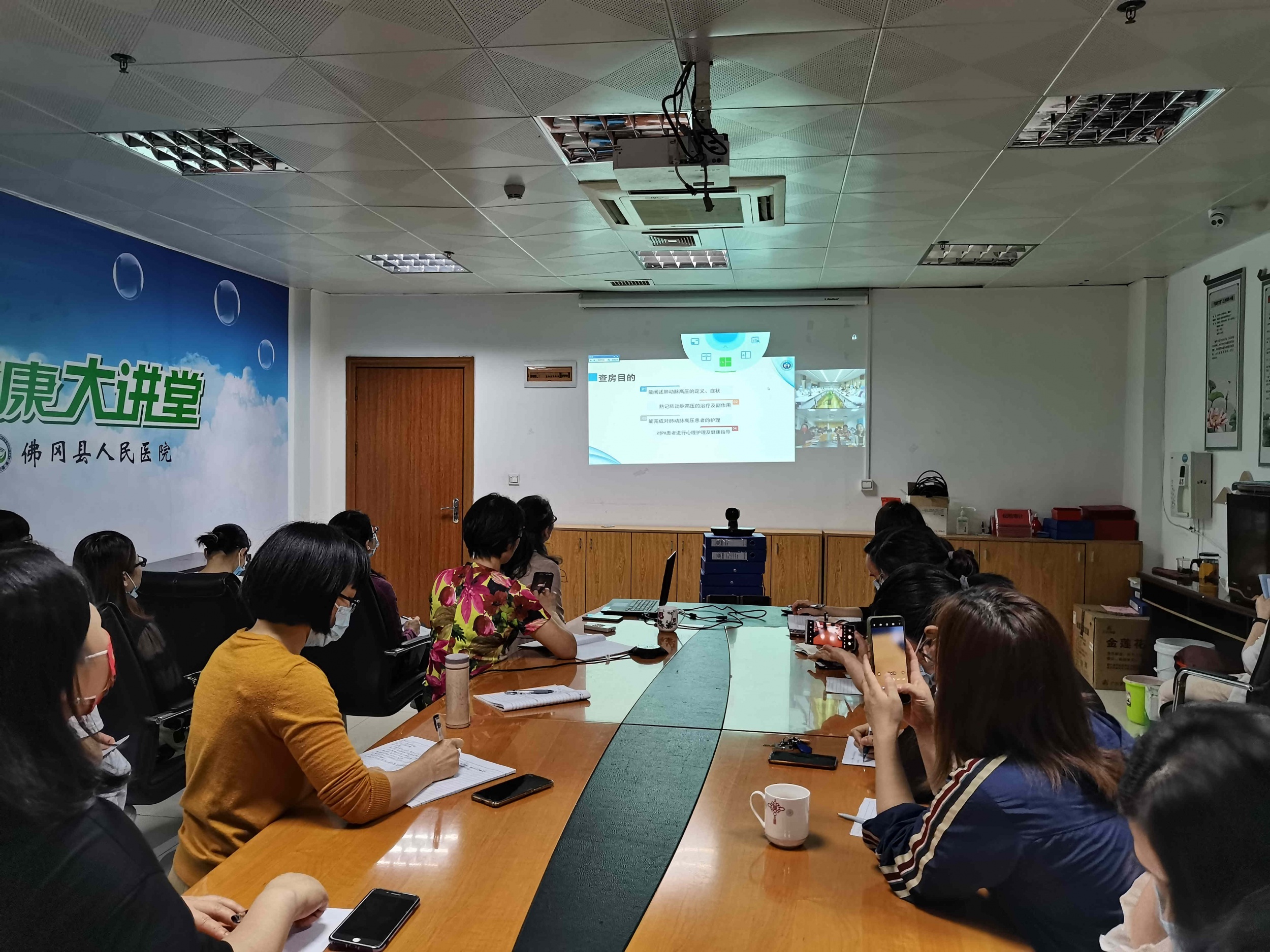 远程查房中,省人医责任护士对“一例肺动脉高压患者的护理”进行了详细的病例汇报,省人医护理专家们对病例进行了深入的讨论和点评,并通过远程连线的形式与我院展开了现场交流。