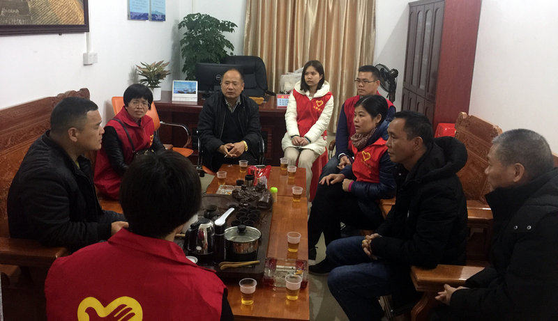 一行人先到村委,与村干部详细了解当地老人的身体健康情况。据了解,有两户人因身体不便或家境困难等原因,长期得不到好的健康医疗治理。在村干部的带领下,一行人来到林奶奶和朱老伯家中。