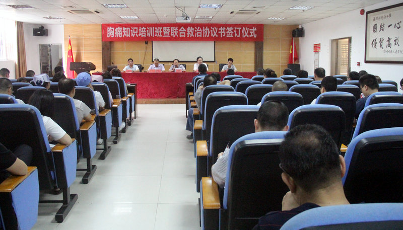 为了进一步提高我县急性胸痛病人救治水平,共同推进胸痛中心建设,进一步规范胸痛病人诊疗流程,提高急性心血管疾病的急诊急救能力,5月16日下午,我院举行胸痛知识培训暨联合救治协议书签订仪式,县卫健局副局长曹翀、医政股温文俊,人民医院院长刘群锋,副院长郑奇志、李智锋等领导出席了该仪式,人医中层干部、各乡镇副院长及救护车司机共计106人参加了本次业务培训。