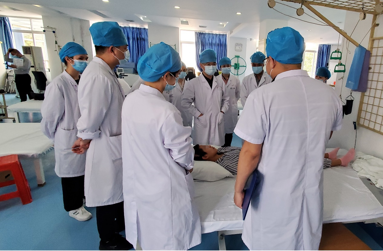 徐光青教授到院后,首先到我院康复医学科开展教学查房,根据患者的实际病情进行认真仔细的诊断评估,从用药、评估评定、治疗手段等多个层面指导如何全面地制定康复治疗方案,并给予了针对性的康复治疗意见。