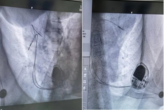 梁远红主任抵达我院后,立即与张先生及家属沟通交流病情,结合病史及辅助检查制定了手术方案,与我院心血管内科团队为其施行心脏起搏器植入术,历时1小时8分钟顺利完成手术,成功植入了心脏起搏器。起搏器感知和功能良好,术后张先生头晕、胸闷、黑曚症状完全消失,心率稳定在70次/分以上并康复出院。