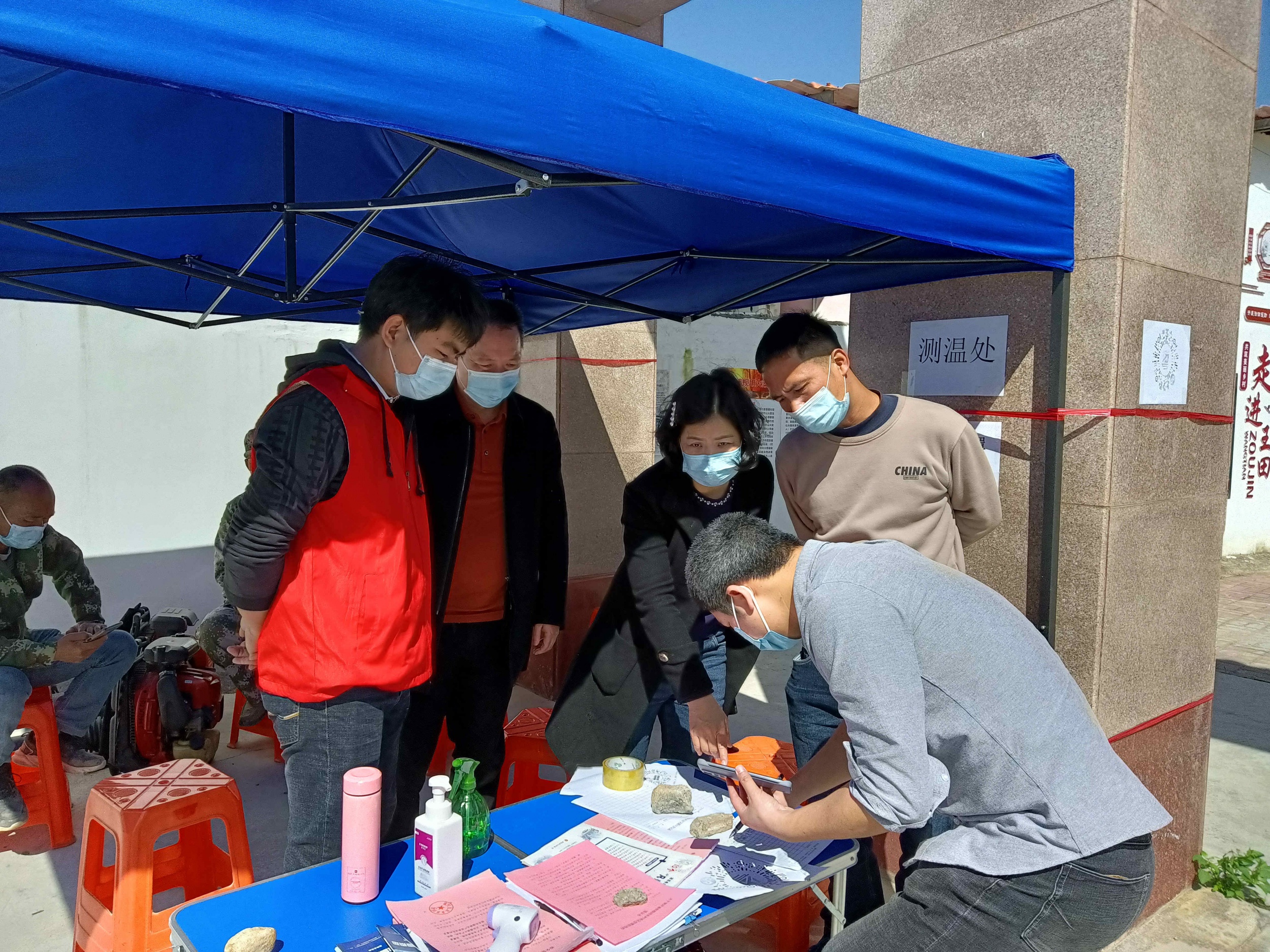 在王田村村口,我院党员同志协助村委对进村人员、车辆开展检查,要求出示粤康码“绿码”和行程卡,专人负责监测体温,询问近十四天的旅居史,同时,检查进村人员及车辆有无携带烟花爆竹等易燃易爆物品,加强森林防火宣传教育,切实做好应急处置等各项工作。