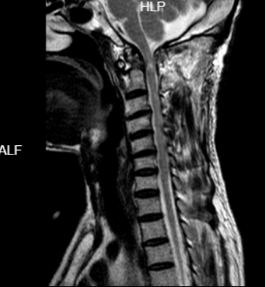59岁的患者黄先生1年前开始出现四肢麻木、乏力,并逐渐出现行走困难及大小便障碍,因其为低保户,经济困难,一直未正规治疗,后症状逐渐加重,入院前已经出现四肢无力以及大小便困难,收入我院骨科一区治疗。入院检查MR提示“寰枢椎脱位、椎管狭窄、脊髓受压”。