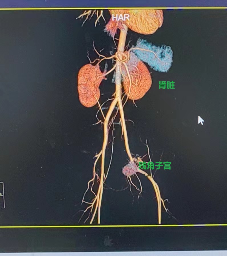 小红入院后,妇科团队立即给予抗感染等对症支持治疗,因其盆腔包块性质难以确诊,且为青春期少女,一旦误诊,切除了不该切除的器官,将对其今后的生活导致及其严重的打击,需详细制定诊疗方案。省人医帮扶专家、县人医副院长陈建国高度重视,立即与放射科组织开展病例讨论,根据三维CT血管成像,最终诊断残角子宫可能性大,小红有剧烈腹痛症状且有丰富血流,考虑为II型残角子宫,需行微创手术切除。