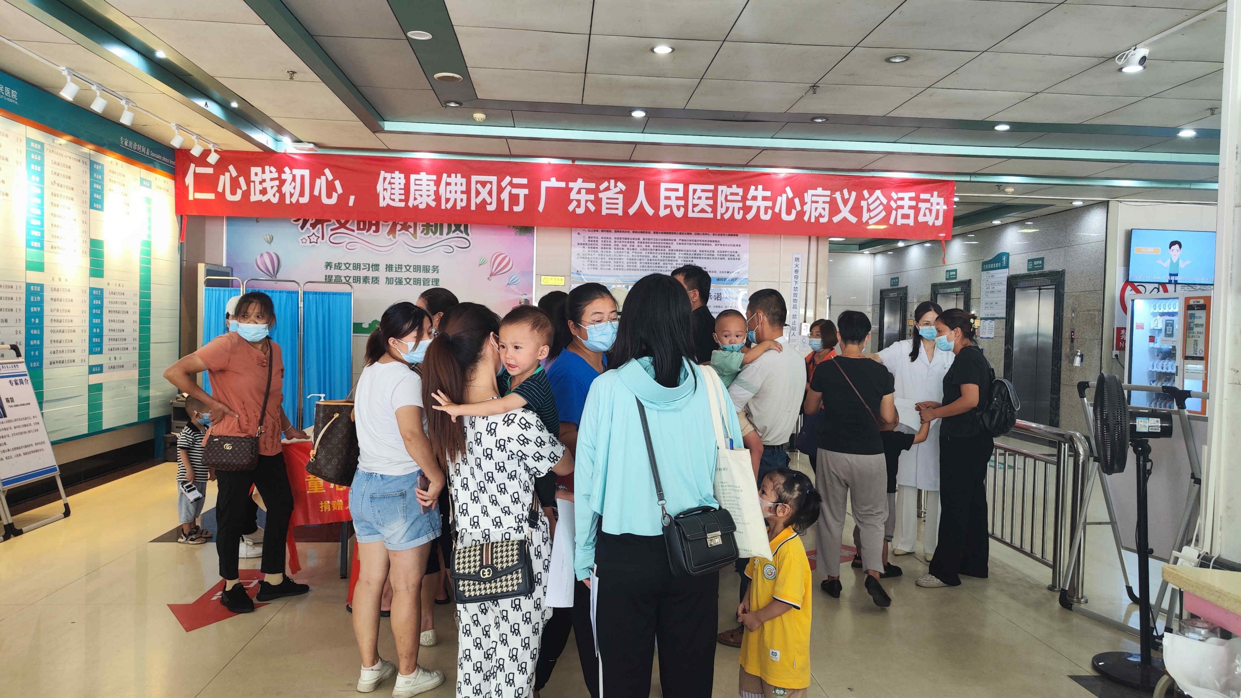 期间,调研组一行在我院住院大厅开展“仁心践初心,健康佛冈行”广东省人民医院先心病义诊活动,还到我院龙凤新区新院区建设展厅,详细了解项目建设的重点难点,并对项目建设内容、规模、进展及亮点表示高度认可。