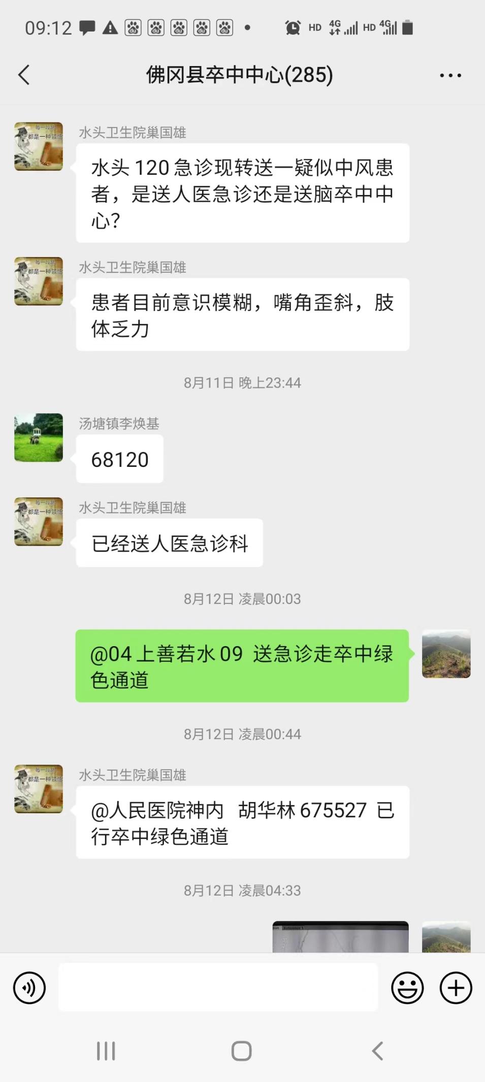 8月11日,水头卫生院医生在县卒中中心工作群急发“水头120急诊送一疑似中风患者去人民医院,患者目前意识模糊,口角歪斜,肢体乏力”,我院神经内科主任、副主任医师胡华林接到信息后立即指示:走卒中绿色通道。