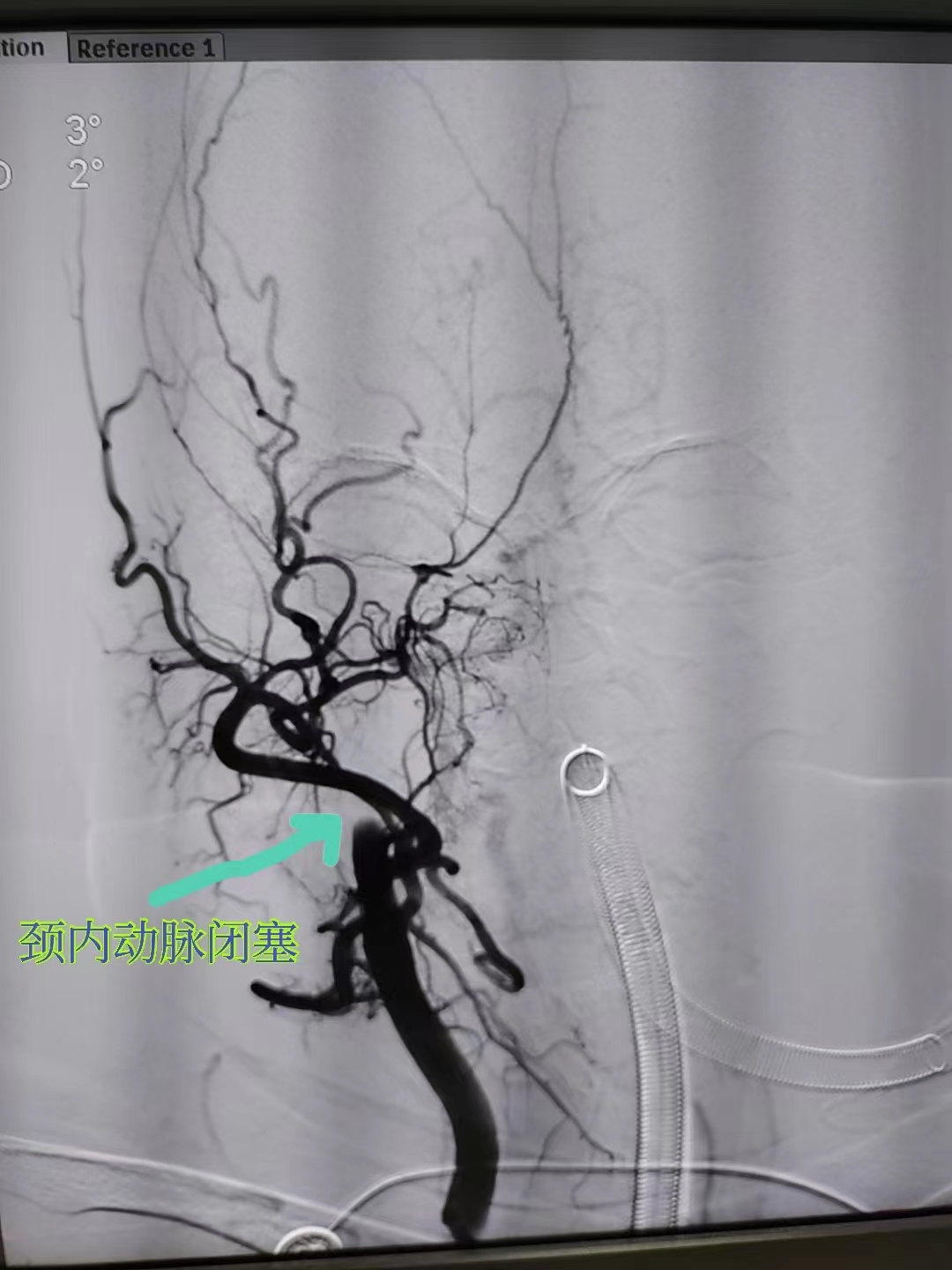 造影发现郑阿姨右侧颈内起始部闭塞