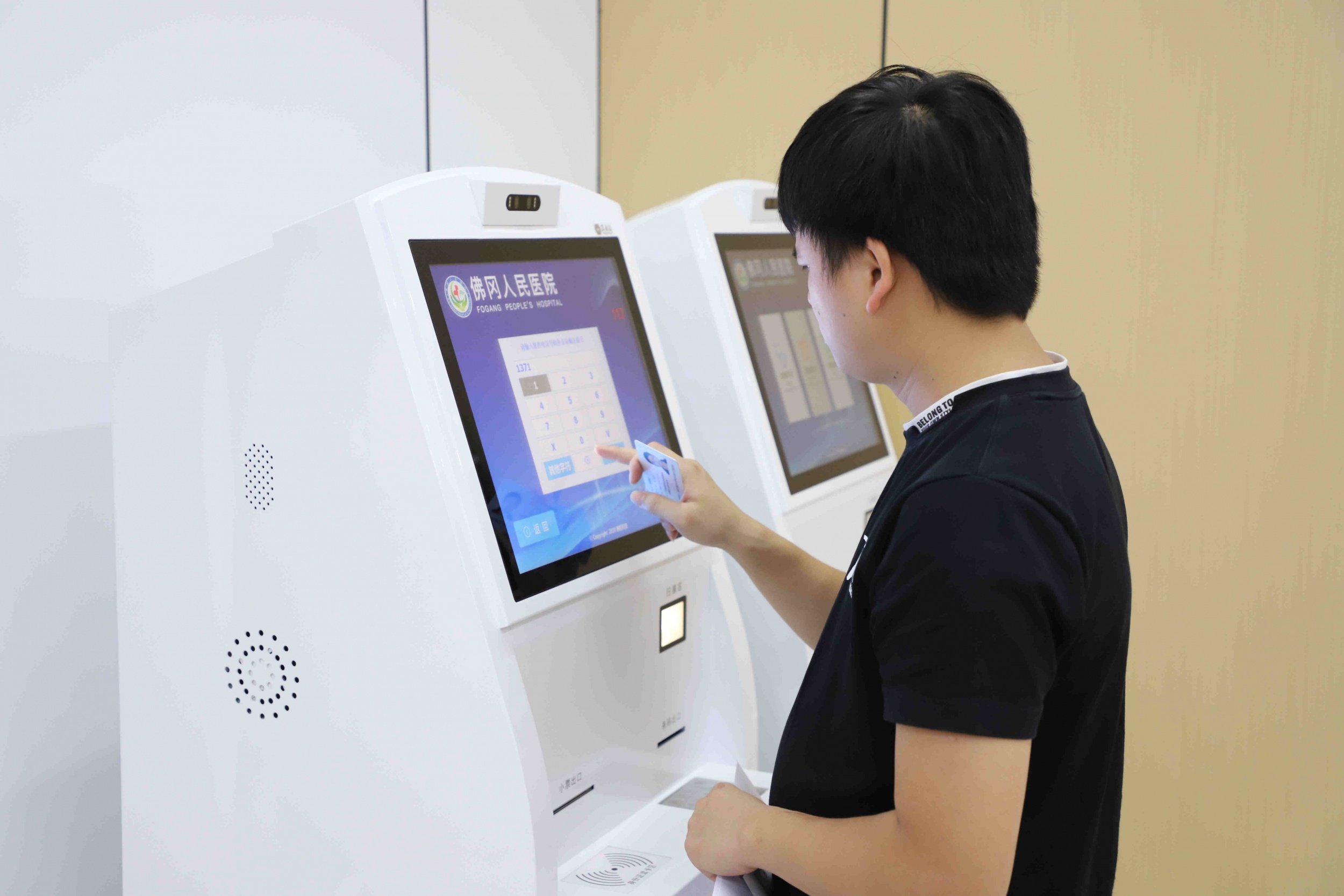 在体检中心内,郑先生正在一站式体检服务机前自助报到,他说:“我在家里预约了健康证体检,到这里报到后就可以找医生检查了,节省了很多时间。”