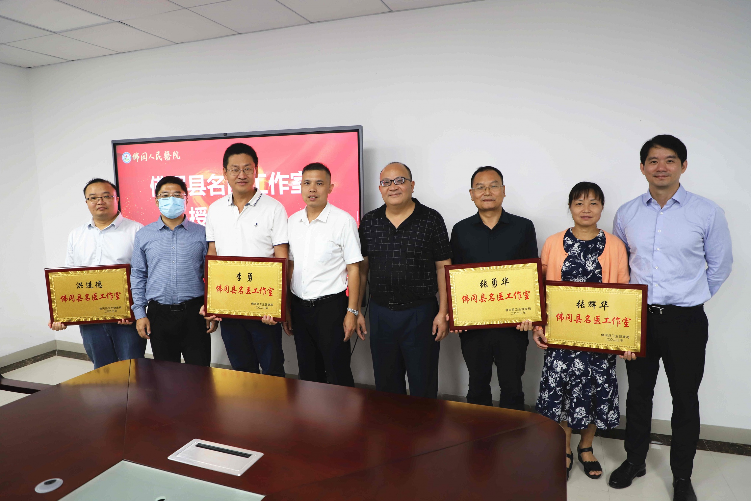 11月10日,韩国强副县长率队到我院调研医院高质量发展工作,并召开座谈会,为县名医工作室授牌。县卫健局党组书记、局长欧阳炽荣,我院党政班子领导和名医工作室代表参加。