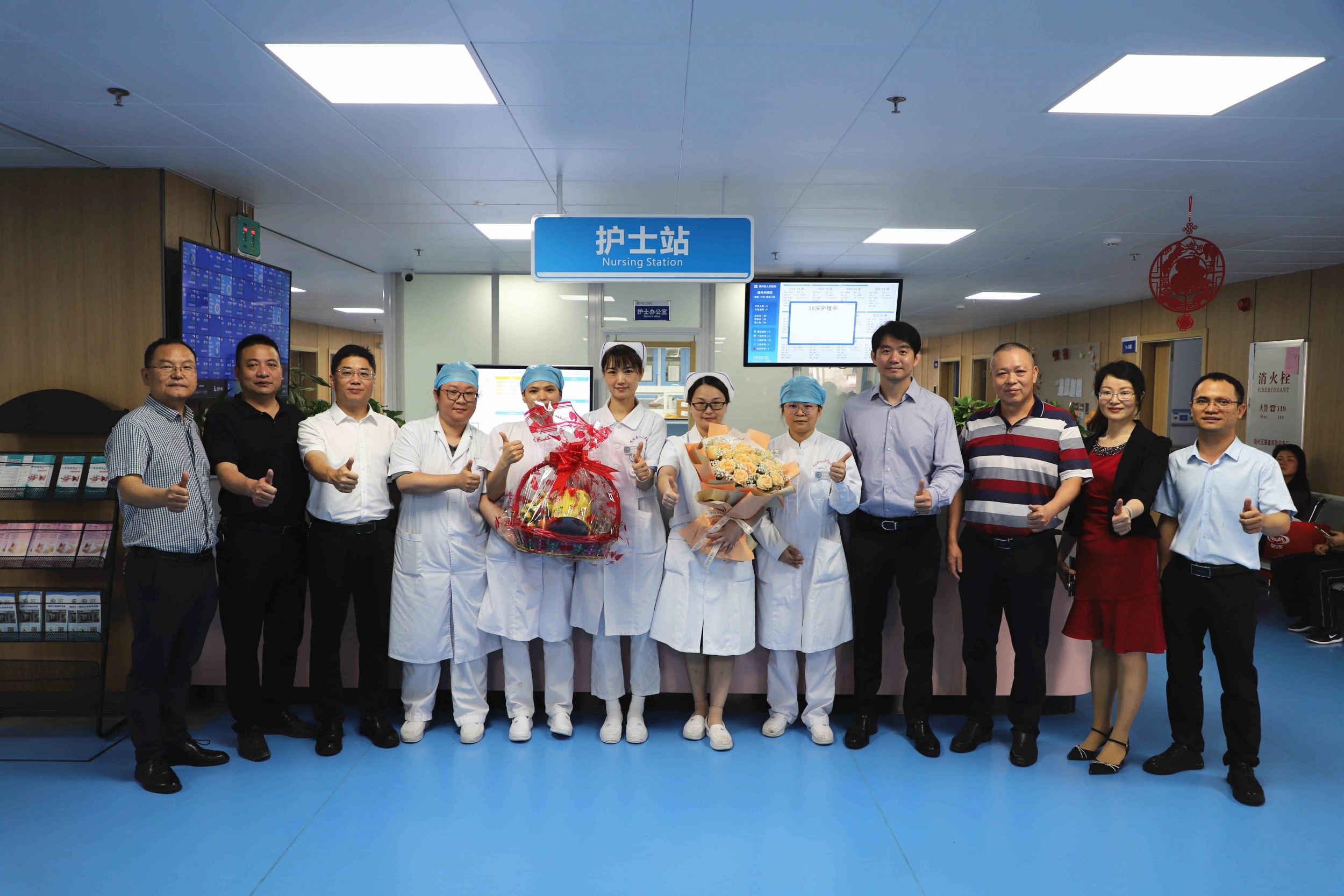 李智锋书记、梁昌详院长带队,亲切慰问全院护理人员,把象征着圣洁美丽的鲜花、甘甜的水果送到白衣天使们的手中,了解护士们的身体健康和工作情况,为坚守在一线的护理工作者送上节日最衷心的祝福。